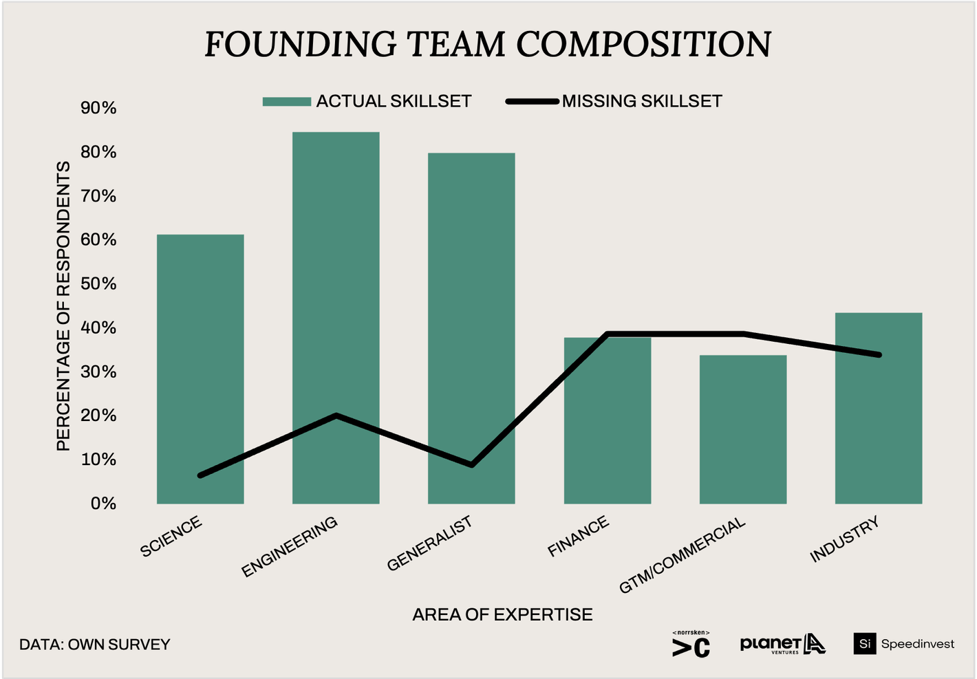 However, Christian also says that in the end, in early-stage investing, it will always be about the team - whether itβs HW or SW. Christian gives the example of Northvolt. Northvoltβs founders did something that everybody thought was impossible. They 1. accessed infrastructure financing very early in their development and 2. got potential suppliers and buyers to invest in them very early. Exceptional teams will find a way to grind through the hardest challenges π And in HW, they need strong scientific and engineering capabilities, on top of more traditional entrepreneurial capabilities like entrepreneurial spirit, finance, commercial, and industry expertise. See the graph of how HW founders perform on these capabilities today: